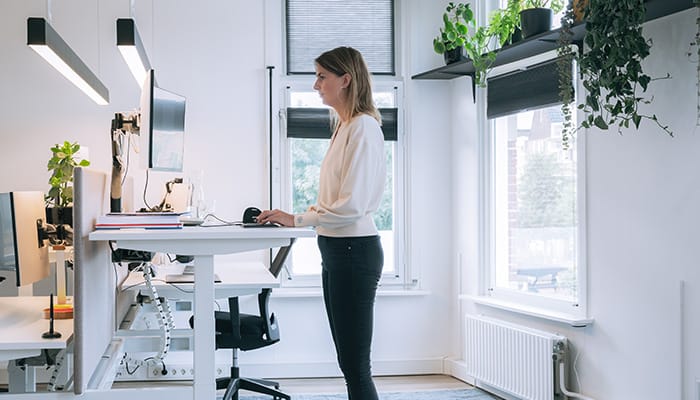 Regularnie zmieniając swoją postawę w ciągu dnia pracy, stymulujesz krążenie krwi i zapobiegasz dolegliwościom fizycznym. W oparciu o rzeczywiste wykorzystanie ekranu, trener Sit-sta kontroluje Twoje biurko od pozycji siedzącej do stojącej lub na wysokości pomiędzy nimi (w przypadku korzystania z taboretu stojącego lub roweru stacjonarnego). Możesz ustawić swoje przerwy osobiście i zaprogramować biurko elektryczne*, aby podniosło się lub obniżyło do wybranej wysokości.
