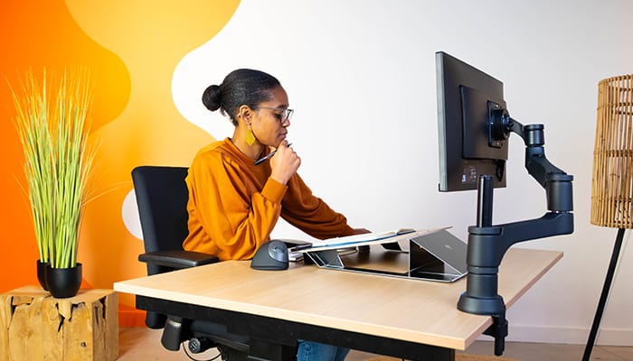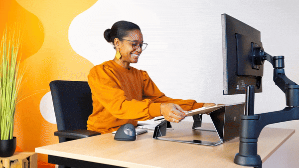Chcesz zrobić notatki? Ten uchwyt na dokumenty łatwo przekształca się w arkusz do pisania, przyciągając arkusz do siebie jednym ruchem nad klawiaturą. Przyciągając pracę do siebie, unikasz pochylonej postawy, a nawet pozostajesz wyprostowany podczas pisania. Idealny do czytania i pisania!