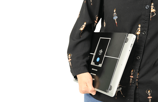 Riser Attachable można łatwo i jednorazowo przymocować z tyłu laptopa za pomocą rzepów Velcro. Instrukcje znajdują się w naszej instrukcji obsługi.